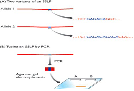 These are the era of repeat sequence that displays the length variations. Different alleles containing different numbers of repeat units and these are multi allelic. There are two types of SSLPs
