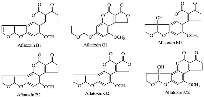 The toxicity level of different aflatoxins is graded as AFB1>AFG1>AFB2>AFG2. It means that AFB1 is rather more toxic than any other aflatoxins found in nature [37].