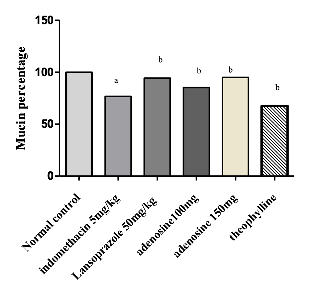Estimation of mucin % = Mean absorbance of test group × 100/Mean absorbance of normal group